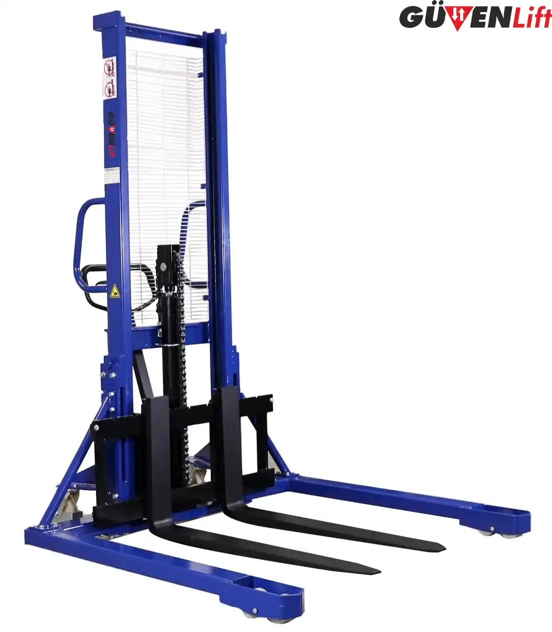 Taşıma Kapasitesi: Manuel istif makinelerinin taşıma kapasitesi modeline ve üretici firma tarafından belirlenen sınırlamalara bağlı olarak değişir. Bu makine 1 tonluk taşıma kapasitesine sahiptir, yani 1 ton ağırlığındaki malzemeleri taşıyabilir.