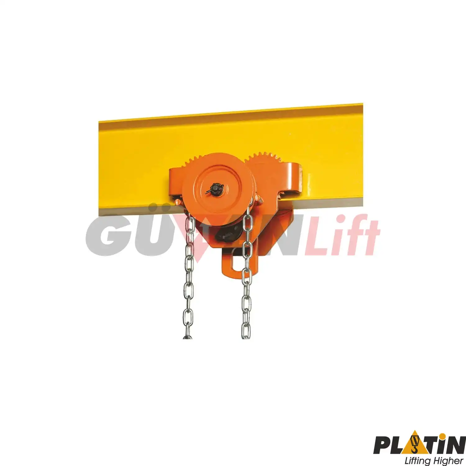 Geared Travel Trolley, sadece yaka sayısını ayarlayarak herhangi bir kiriş genişliğine ayarlanabilir.