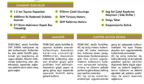 Güvenlift Tavsiyesi: “Kapalı alanlarda gürültüsüz, egzoz gazsız ve yüksek hassasiyetli bir istifleme performansı arıyorsanız, 1.2 tonluk akülü modelimiz fiyat/performans noktasında rakipsizdir.”