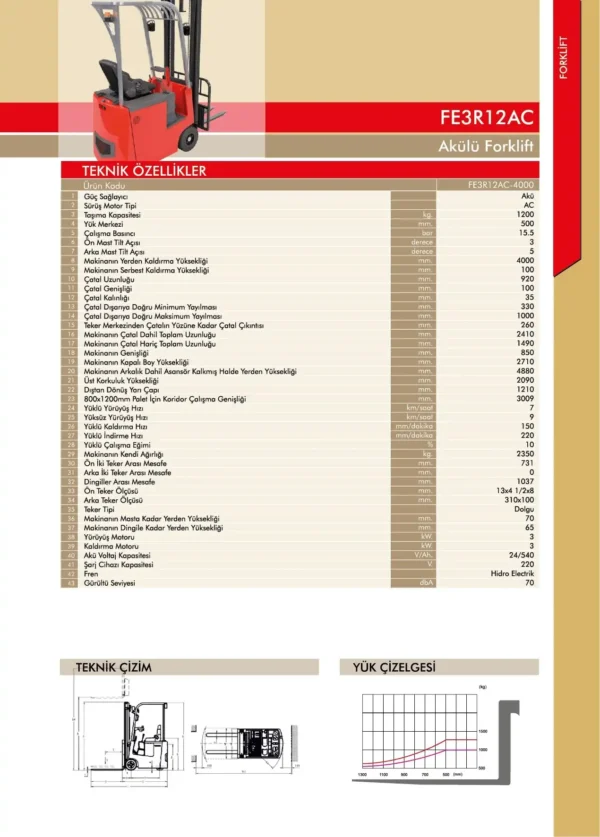 Görseldeki FE3 serisi standartlarına göre optimize edilen bu model, hassas kumanda kolları (joystick/levye) ve dijital ekranı ile tüm fonksiyonların anlık olarak takip edilmesini sağlar. Elektromanyetik fren sistemi ve sağlam asansör mekanizması ile iş güvenliği en üst seviyededir.