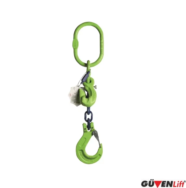 Güvenlift güvencesiyle sunulan 1 Kollu Zincir Sapan (GRADE 100), tek noktadan bağlantı gerektiren yüklerin vinçle güvenli bir şekilde taşınması için tasarlanmış profesyonel bir kaldırma aparatıdır. Sahip olduğu kısaltma kancası sayesinde zincir boyu saniyeler içinde ayarlanabilirken, GRADE 100 alaşımlı çelik yapısı sayesinde hafif ve yüksek mukavemetli bir kullanım sunar.