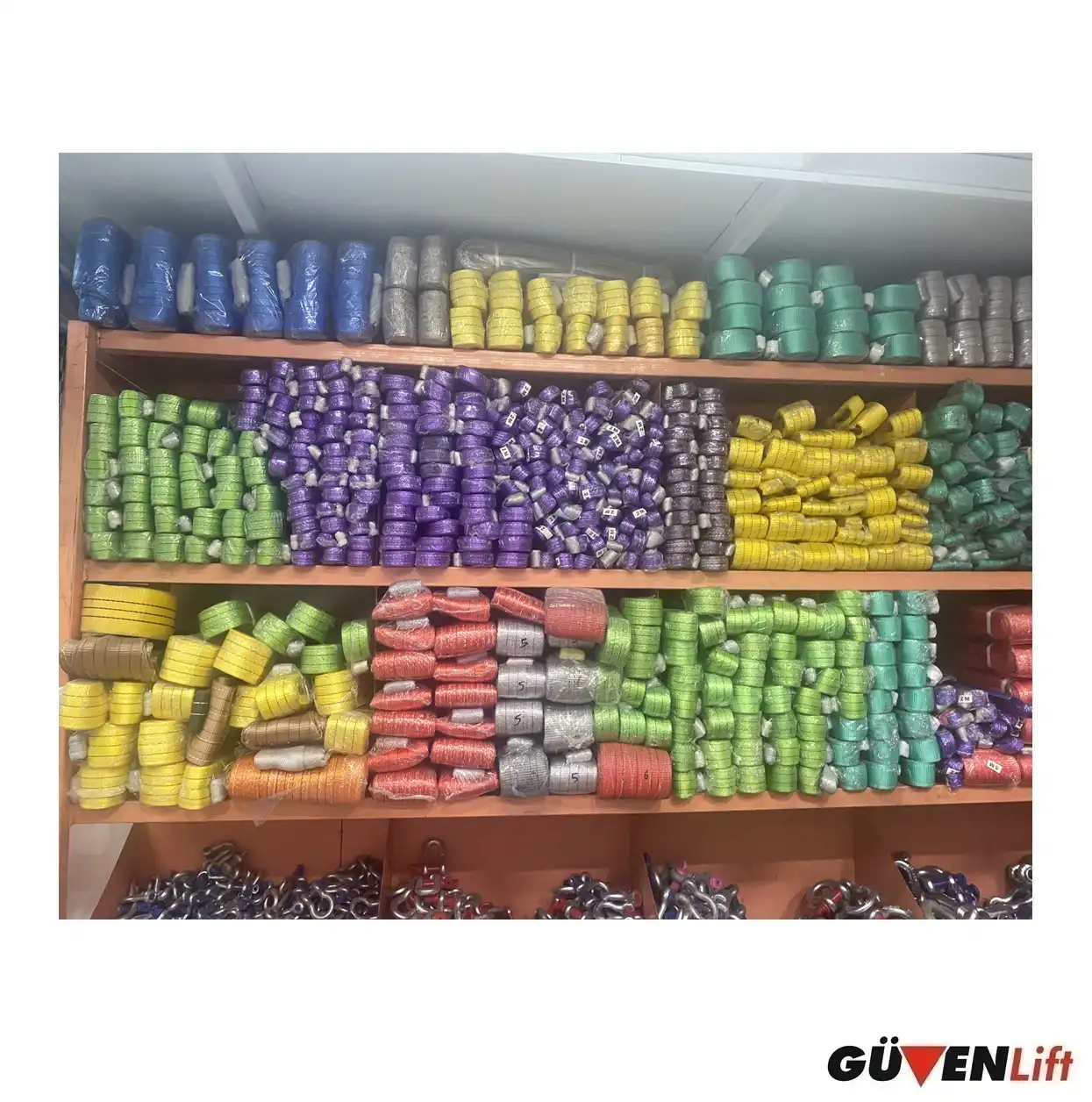 Yüksek mukavemetli %100 polyester iplikten üretilen 1 ton kapasiteli gözlü sapanlar, yüklerinize zarar vermeden güvenli taşıma imkanı sunar. EN 1492-1 standartlarına uygun, çift katlı dokuma ve güçlendirilmiş göz yapısı ile endüstriyel kullanım için idealdir. Hafif yapısı sayesinde kolayca taşınabilir ve 0,5 metreden 30 metreye kadar farklı uzunluk seçenekleriyle her türlü kaldırma operasyonuna uyum sağlar.