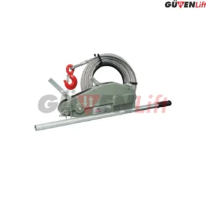 Elektrik gücüne ihtiyaç duymadan, manuel kuvvetle 3200 kg’a kadar yük çekme, germe ve kaldırma operasyonları için tasarlanmıştır. 20 metre dayanıklı 6×26 Warrington Seale çelik halatı ve korozyona dirençli hafif gövdesiyle her türlü arazi ve şantiye koşulunda yüksek mobilite sunar. 2006/42/AT Makine Direktiflerine uygun, sertifikalı ve güvenli bir profesyonel ekipmandır.