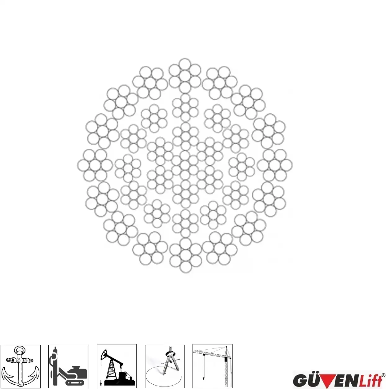 Güvenlift ürün gamının en teknolojik ve güvenilir parçalarından biri olan 35×7 Dönmeyen Çelik Halat, yükün serbestçe asılı kaldığı operasyonlarda halatın kendi ekseni etrafında dönmesini (torsiyon) engellemek için özel olarak tasarlanmıştır. Çok damarlı (multi-strand) yapısı sayesinde iç ve dış sarmalların birbirini dengelemesini sağlar. Bu özellik; kule vinçler, petrol sondaj kuleleri, fore kazık makineleri ve derin deniz operasyonları gibi hassas denge gerektiren alanlarda “sıfır rotasyon” ile en güvenli çalışma ortamını sunar.