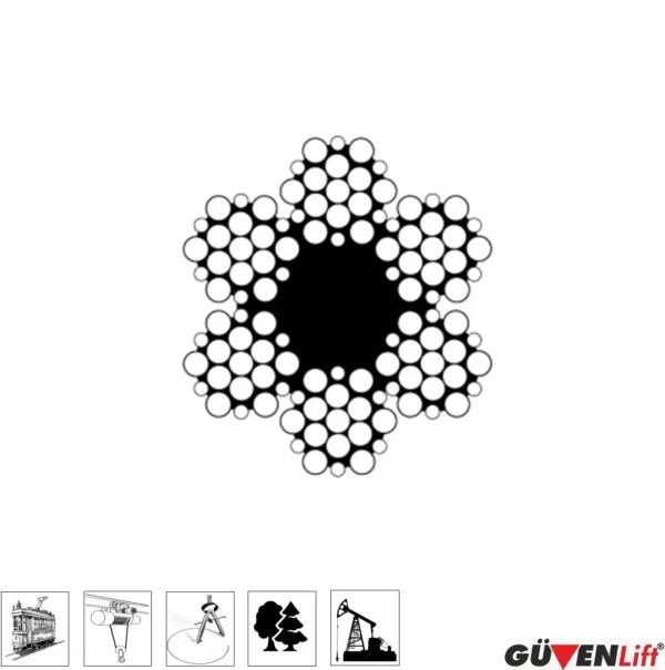 Güvenlift güvencesiyle sunulan 6×19 Kendir Özlü Warrington Çelik Halat, yüksek mukavemet ve esnekliğin mükemmel kombinasyonunu arayan endüstriyel sektörler için tasarlanmıştır. Tramvay hatlarından petrol rafinerilerine, orman işletmelerinden asansör sistemlerine kadar geniş bir kullanım yelpazesine sahip olan bu sertifikalı ürün, en zorlu çalışma koşullarında üstün performans sergiler.