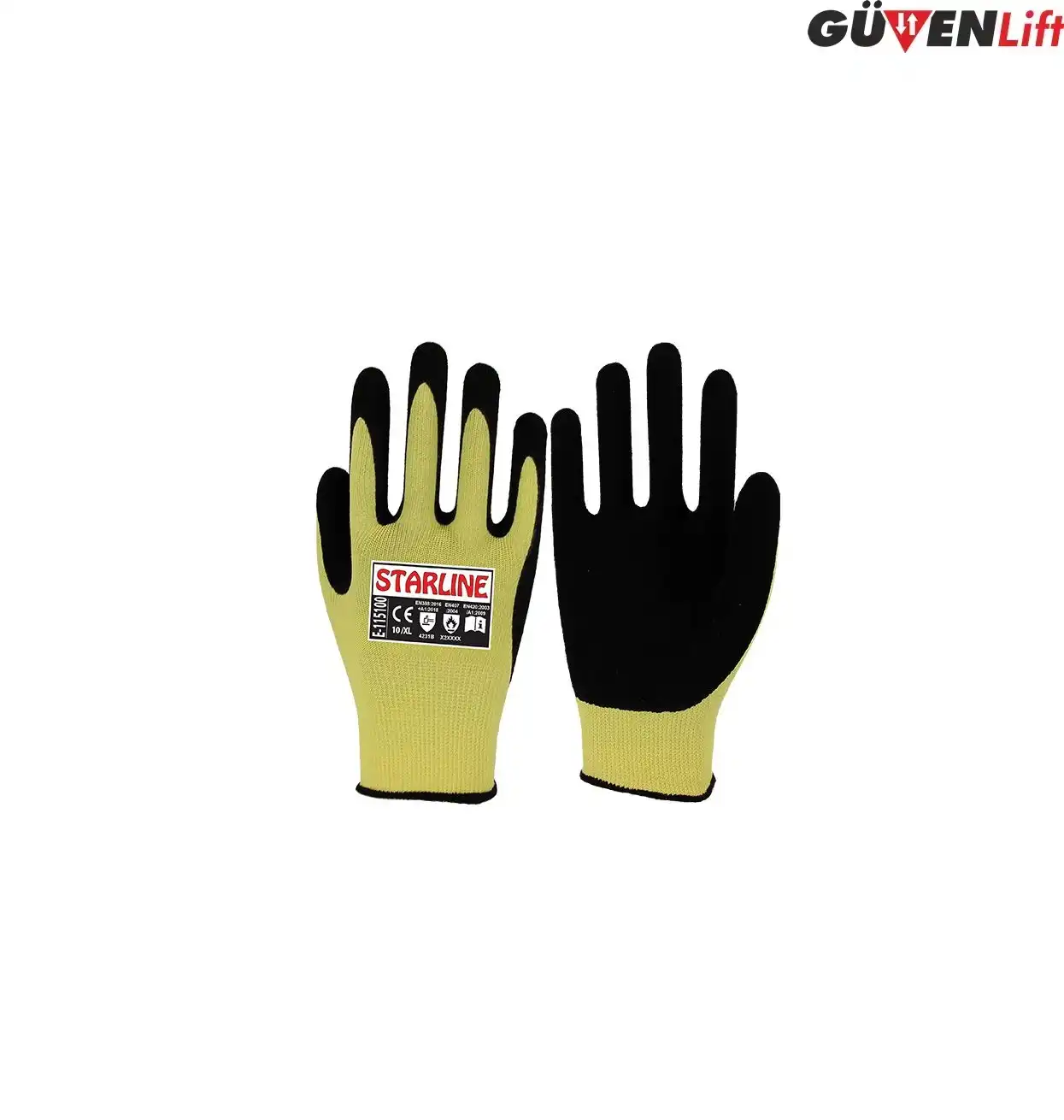 Bu eldivenler kuru veya ıslak ortamlarda nesneleri tutmak için güçlü kavrama özelliklerine sahiptir. Sahip olduğu HDPE+Fiberglas astarı sayesinde kesiklere, yıpranmalara ve delinmelere karşı koruma sağlar. Siyah nitril kaplaması sayesinde sıvı geçirmezliği ve üstün özellikler sunmaktadır. İkinci kat siyah nitril kısmı zımpara yüzeyi gibi kumludur; kaydırma yapmaz. Eldivenin 3/4 ünün kaplamalı olması ellerin hava almasına imkan verir.
