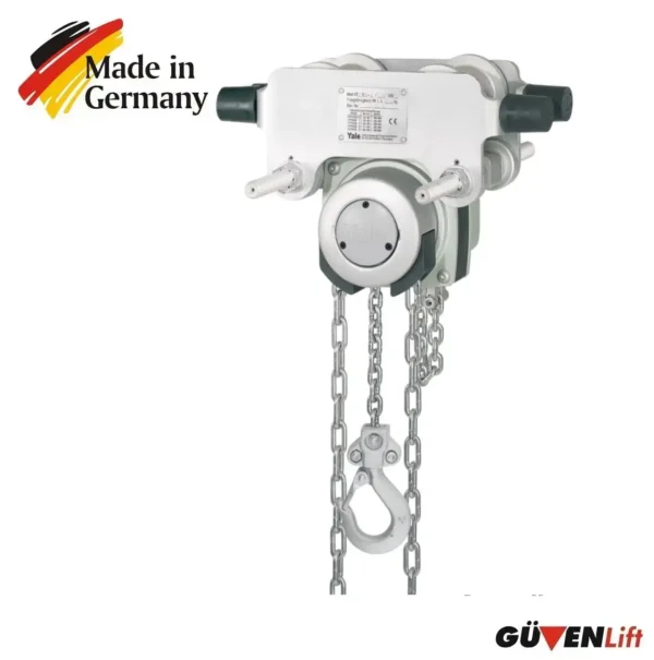 Donanım: Standart olarak sunulan çinko kaplama yük zinciri ve paslanmaz çelik manuel zincir kombinasyonu.